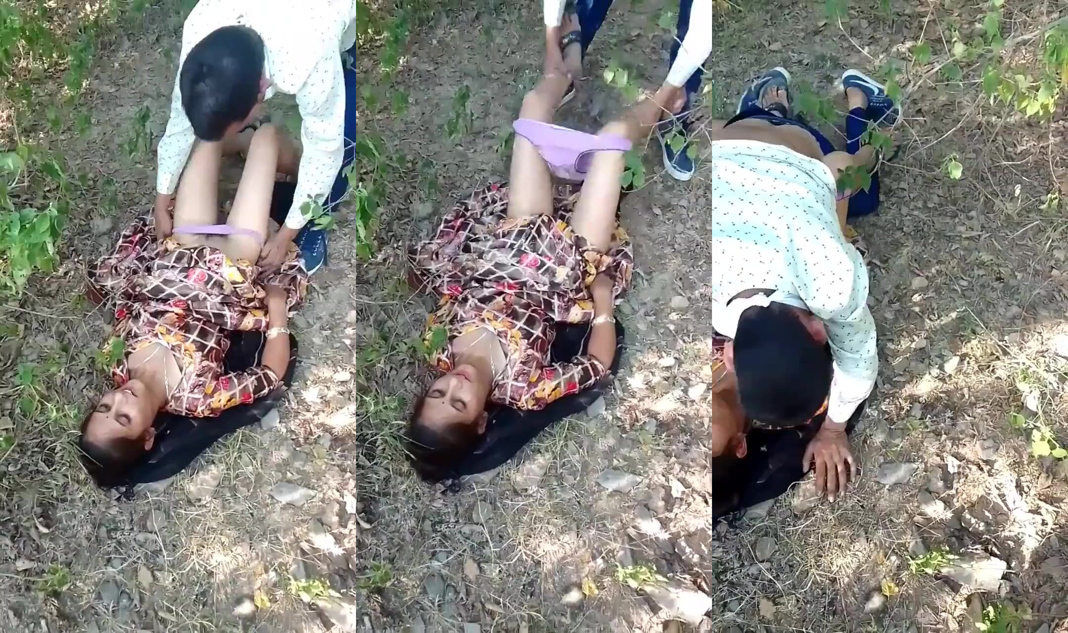 Bhabhi ka yaar usko jungle mein le jata hai, aur wahan usko zameen par lita deta hai. Fir wo bhabhi ka kameez utha kar uski pink panty nikaalta hai. Bhabhi uske saamne apni taangein khol deti hai. Fir uska yaar pant mein se apna lund nikaal kar bhabhi ki taangon ke beech mein aa jata hai, aur chut mein pel deta hai. Watch and enjoy Desi Sex MMS Clip.