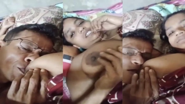 Desi miya-biwi bistar par bina kapdon ke lete hai, aur apna Hot Sex MMS Video bana rahe hai. Husband apni wife ke boobs daba raha hai, aur nipple muh mein leke choos raha hai. Fir biwi apne pet par hath ferti hai, aur fir husband ka khada lund masalne lagti hai. Fir dono kiss karte hai. Enjoy this Erotic Couple Sex Video.