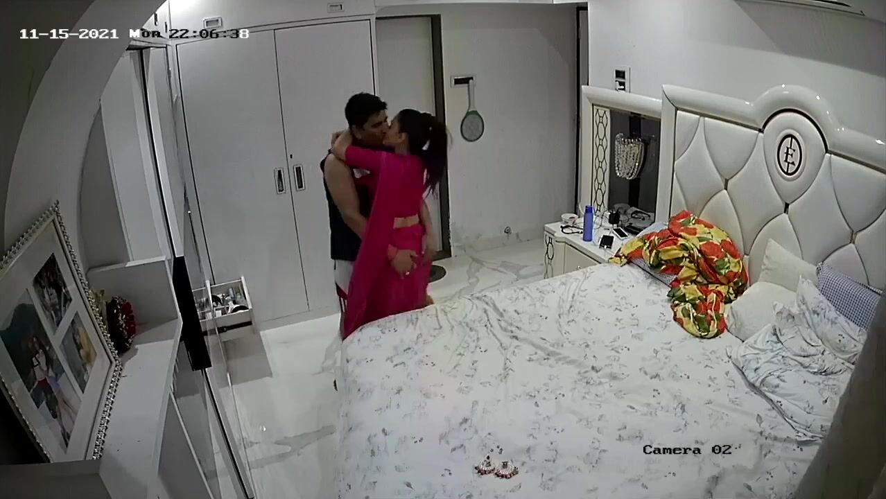 Aadmi laal saree wali aurat ko apni baahon mein bhar kar bistar par leke jata hai, aur uske upar chadh jata hai. Dono ek-doosre ke honth choosne lagte hai. Fir aadmi aurat ki saree utha kar uski panty nikaalta hai, aur khud bhi nanga hoke uski chut mein lund pel kar chodne lagta hai. Wo aurat ki taangein utha kar chodne lagta hai. Kuch der mein aurat aadmi ke upar aake chudti hai, aur uske baad dono doggy-style sex karte hai. Security camera se leak hui Indian Sex Video zaroor dekhe.